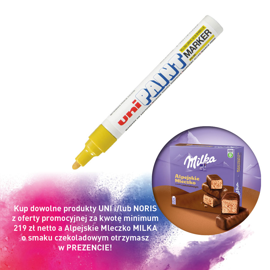 jm.: szt Kup dowolne produkty UNI i/lub NORIS z oferty promocyjnej za kwotę minimum 219 zł netto a Alpejskie Mleczko MILKA o smaku czekoladowym otrzymasz w PREZENCIE!