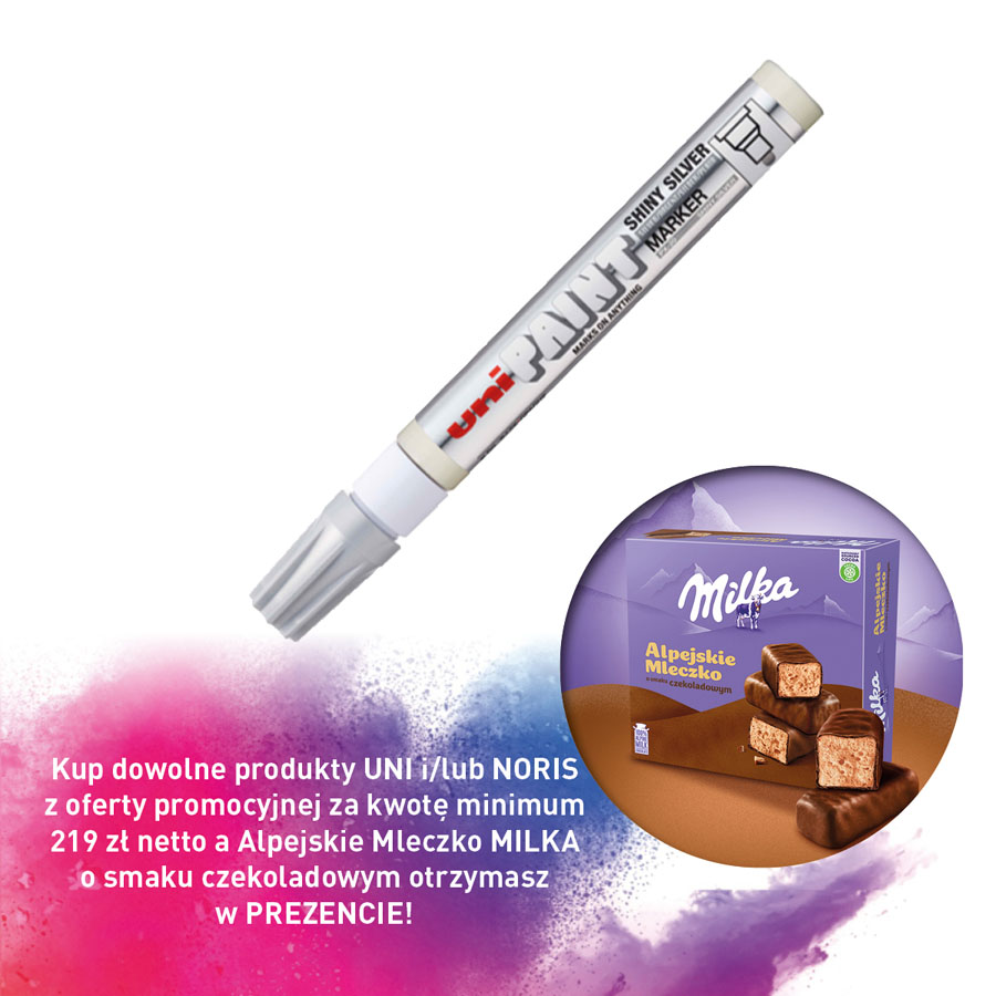 jm.: szt Kup dowolne produkty UNI i/lub NORIS z oferty promocyjnej za kwotę minimum 219 zł netto a Alpejskie Mleczko MILKA o smaku czekoladowym otrzymasz w PREZENCIE!
